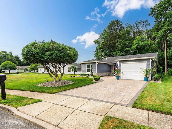 Welcome to this beautifully renovated two-bedroom, two-bathroom ranch home nestled in a cul-de-sac, in the highly desirable Greenbriar II, an active adult community. This move-in ready gem boasts a host of impressive updates, including a new roof, HVAC system, hot water heater, and windows. Step inside to discover vinyl waterproof herringbone flooring, elegant crown molding, and recessed lighting throughout. The living room features a custom gas fireplace, perfect for cozy evenings. The modern kitchen is a chef's dream, complete with white shaker cabinets, a quartz countertop, stainless steel appliances, and a convenient breakfast bar. Both bathrooms have been fully renovated with stylish ceramic tile flooring. Outside, enjoy a full paver driveway and a serene paver backyard patio that backs up to the woods. The custom-added covered porch in the back is perfect for outdoor entertaining, equipped with lighting, a fan, and a TV connection. Don't miss the opportunity to own this stunning home in Greenbriar II!