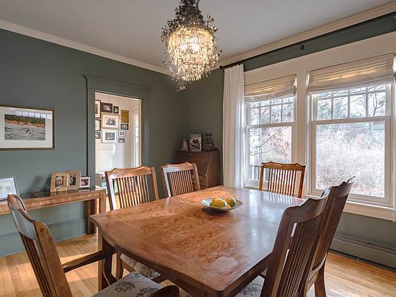 Classic and opulent, the Warner House c.1872, is one of the finest examples of classic Dartmouth period architecture. Blending modern conveniences with historic charm, fine craftsmanship is evident throughout, highlighted by double-hung Marvin custom windows and doors, and custom fixtures. 2 full bathrooms and 3 large bedrooms with extensive closets to refine a highly practical floor plan. 2 Mitsubishi ductless heat pumps let you unwind and enjoy the peace and quiet of a tree-lined street in year-round comfort. A professional chef's kitchen with a gas stovetop, soapstone countertops lead to a marvelous sunroom/playroom. An eloquent flagstone backyard awash in perennials leads you to a tremendous sized shed that can shelter your year-round hobbies. The adjoining lake is surrounded by a civic green belt that offers privileged access year-round angling and recreation. Located in the Hawthorn School District, this home sets the stage for a show-stopping urban lifestyle, steps away from shopping, dining, and doing.