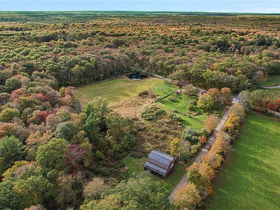 Country Charm with Equestrian Opportunity! Set on a peaceful 11-acre parcel, this charming 4-bedroom farmhouse offers a rare opportunity for those seeking space, privacy, and the freedom to live life a little more connected to the land. Whether you're dreaming of gardening, hobby farming, or equestrian pursuits, this versatile property delivers. The home features a first-floor primary suite, hardwood floors, a bright sunroom, and plenty of flexible space—including a bonus room over the garage that, along with the sunroom, offers great in-law potential or options for extended family, guests, or multigenerational living. The property also includes a 2-car garage plus three sheds for storage or workshop use, and a new septic system for added peace of mind. Outdoors, the setting is truly special: a fully fenced yard, classic New England barn, greenhouse, and a thoughtfully maintained collection of organic apple trees, blueberry bushes, and garden spaces create a lifestyle rooted in nature. A small pond at the corner of the property adds to the charm and attracts local wildlife. Solar panels help manage energy costs, and a hot tub offers the perfect spot to unwind beneath the stars. The perfect blend of rural charm and practical living—ideal for the next chapter.