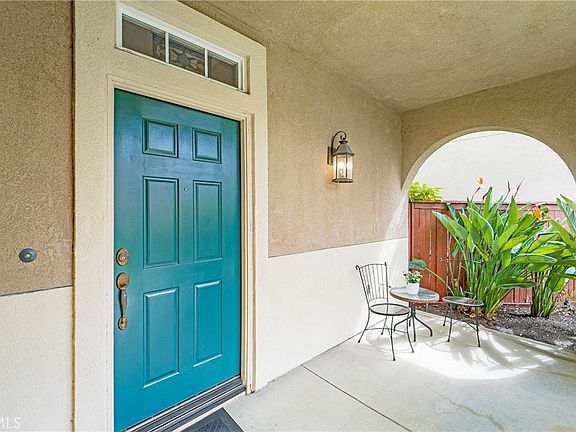 At the base of the Saddleback Mountains, in the coveted Painted Trails community, sits this fabulous home offering a covered front porch AND a lovely backyard with a lovely garden to brag about! This home is a zero lot line house, a detached condo reflecting front landscaping being cared for by the HOA and the streets being privately maintained. Plenty of space to relax on the covered front porch or play in the HOA maintained grassy area out front. As you enter, you notice that fresh, natural light floods this home and beautiful wood floors compliment the neutral decor! A formal living room offers views as well a warm, cozy fireplace. The counter opens from the living room to the kitchen for ease of entertaining and visiting. A formal dining room leads out to a charming and serene garden! This floor plan boasts a large, open kitchen with ample storage and plenty of space to prep, cook and entertain! Upstairs is complimented with a gorgeous owner's suite with walk in closet, soaking tub, walk in shower, and dual vanities as well as a private stool. The secondary bedroom boasts an en suite remodeled bath with beautiful modern finishes, dual vanities, tub and shower. The third bedroom is currently modeled as a view and light filled open office space, with built in dual desks and custom storage but can be simply converted to an enclosed room. An upstairs laundry room offers ease of use, situated in between all three bedrooms and includes the washer and dryer set. The backyard is graced with a serene and special space, set up to enjoy outdoor dining, fruit for juicing, flower picking and soft lighting for night visits. The flowers are abundant and just beginning to bloom! The orange tree is abundant in bloom and a true treat to harvest! The hummingbirds are in harmony as they fly through this beautiful and welcoming space. The garage is filled with ample storage cabinets and above head storage for ease of organization! This lovely home offers a beautiful place to rest, play and entertain and is centrally located to so many amenities! Painted Trails offers pools, parks, sport courts, a rose garden, fitness park, wilderness trails and beautiful views! Award winning schools, hiking and biking trails, dog parks, pickle ball courts, shopping and dining are just around the corner. Lake Mission Viejo membership conveys and boasts swimming, fishing, boating, concerts and many event opportunities! This is an opportunity to own a delightful home, in a fantastic location!