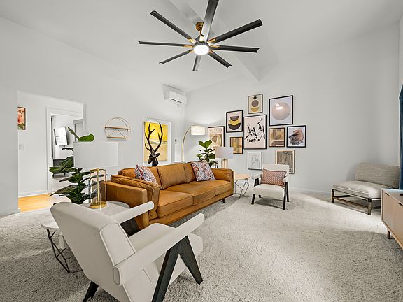 Renovations on the 900 square foot space were completed in September 2024. Relax in the fully furnished living room featuring gallery walls, smart TV, and plenty of comfy seating. Bedroom features king sized bed and kitchen includes brand new stainless steel appliances and all the necessities for a home cooked meal. Enjoy high ceilings, in-unit washer and dryer, and spacious living areas.