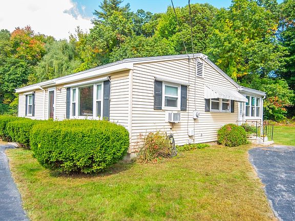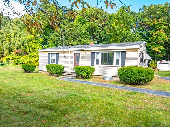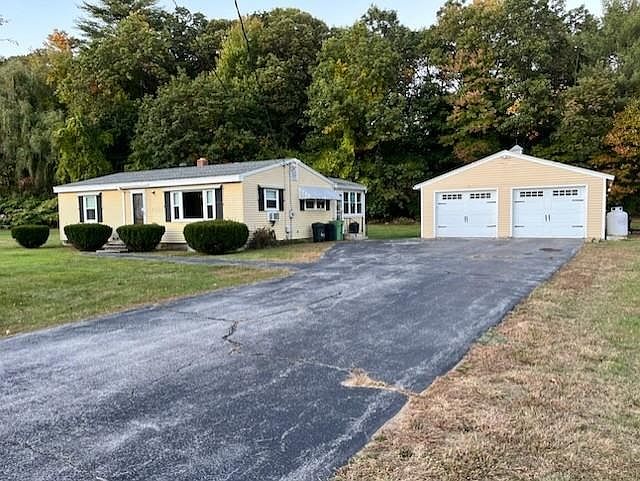 OPEN HOUSE IS CANCELLED !!COME and take a look at this Well-maintained Ranch that offers desirable one-level living. It features 2 Bedrooms and 1 bath and a heated porch with plenty of windows that overlook the lovely rear yard. It's a great spot to relax and enjoy your morning coffee! Enter in to the large eat-in kitchen where all appliances remain, to incl. the washer and dryer in the LL , a spacious living Rm too. The property features a completely level 1.45 acre lot with plenty of room for gardening and outdoor activities. Additionally there is a heated detached 2 -Car garage perfect for the car enthusiast with electricity and a large storage area behind it for all your lawn care needs and more. There is also a storage shed in the rear of the property w/ a garage door for even more storage space. Just minutes to I-93 shopping and restaurants. A Quick close possible. Don't miss this chance to make it your own!