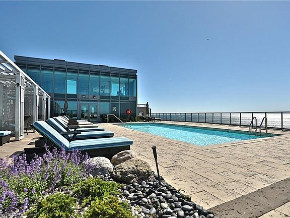 Welcome to luxurious lakeside living in the prestigious Shores Condominium, nestled in the vibrant heart of downtown Bronte. This exceptional ground floor 1 bed + den, 2 full bath unit offers the perfect blend of elegance, space, and convenience just steps from the lake, marina, restaurants and shopping. Soaring 11-foot ceilings create a bright and airy ambiance throughout, while the expansive private terrace/front yard offers a rare outdoor retreat ideal for entertaining or enjoying morning coffee by the lake breeze. The versatile den with built in Murphy bed easily serves as a home office or guest space, and both full bathrooms are beautifully appointed. The open-concept kitchen and living area flow seamlessly with modern finishes and generous natural light. New light hardwood floors throughout, new high end LG appliances, and 2 owned lockers. Enjoy world-class building amenities, including; Rooftop Pool, Deck & Garden with panoramic lake views, Gym & Yoga Room, Games Room with Billiards, Guest Suite, Secure Underground Visitor Parking. Available for immediate closing.
