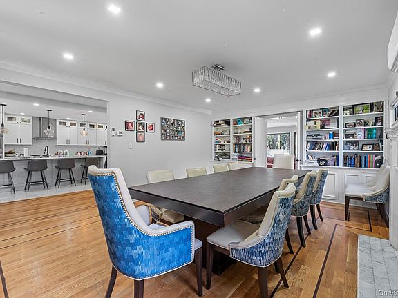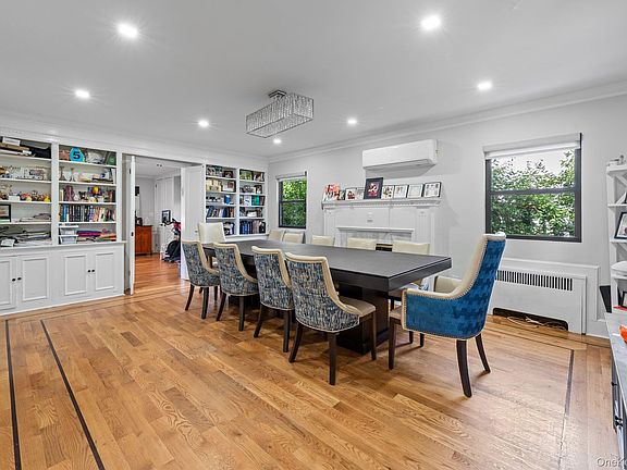 Welcome to this beautifully renovated, sun-drenched home on a quiet, tree-lined residential street. This charming residence features three spacious bedrooms, a lovely living room with a cozy fireplace, and a bright sunroom or home office. The formal dining room opens to an elegant chef’s eat-in kitchen with floor-to-ceiling custom cabinetry, a full suite of stainless steel appliances, an island with bar seating, and a generous breakfast area. The second floor offers a primary bedroom with a private en-suite bath and balcony, plus two additional bedrooms sharing a modern full bath. The large finished basement is ideal for entertaining, complete with a home office area and ample storage. Additional highlights include a laundry room on the first floor, a wide private driveway, a two-car garage, and a beautiful backyard. Conveniently located near shopping, schools, parks, and restaurants.