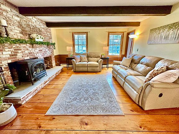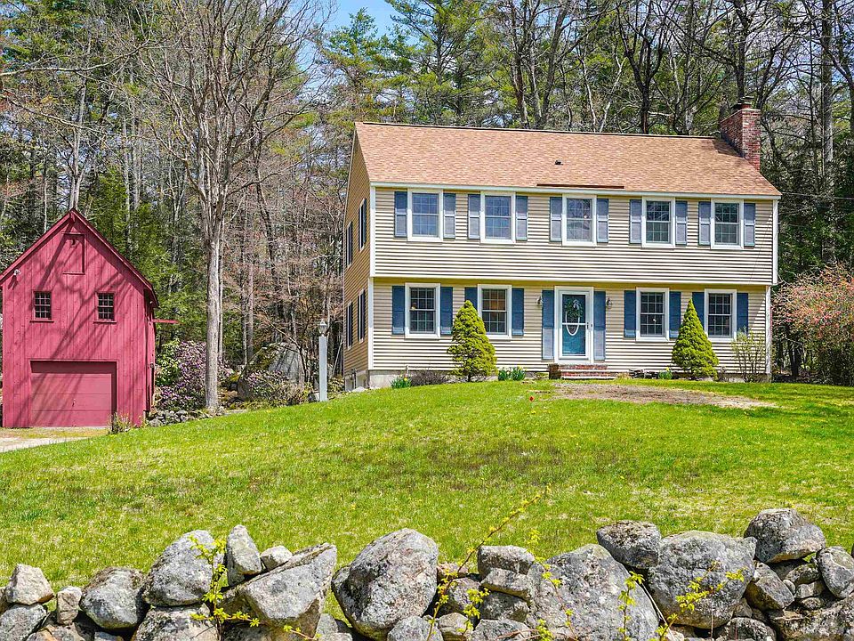 Now is your chance to live in beautiful Amherst NH! Nestled in the woods just down the road from 600 acres of town conservation land and trails as well as the Peabody Environmental Center, this lovely home is set on over 2 picturesque acres with flat back yard surrounded by woods and fronted by a pretty stone wall. Loved and maintained by the current owners for 30 years, you will love the functional kitchen with large peninsula and lots of storage that works well with the welcoming family room that centers on a stunning reclaimed brick fireplace and newer Jotul® wood stove. Wide pine floors carry you to a bright formal living room and on to the well-sized dining room with large bay window overlooking the postcard-worthy backyard. Upstairs is a large primary suite with 3/4 bath along with 3 other large bedrooms, all with beautiful wood floors and serviced by a tidy full sized bathroom, just the right size for happy bath nights! The red, "every-man's-dream barn" offers loads of additional storage space for vehicles and "toys" and even more heated living space upstairs--perfect for hangout space, office or guests. 7 mo old roof, newer Andersen 400 windows and insulated vinyl siding, lovely wide-pine floors and brand new garage doors--too many updates to list! In addition to the top-rated schools, quick access to commuting routes, shopping and hiking, you will love the magical backyard, peaceful morning stillness and regular visits from all manner of fauna. Come see for yourself!