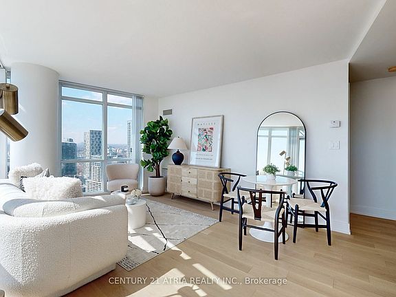 This fully renovated corner unit offers two spacious bedrooms and two contemporary bathrooms, with a generous living space of 938 sq. ft. plus a 45 sq. ft. balcony. Recent upgrades include brand-new appliances, engineered hardwood floors, and sophisticated marble countertops, setting a new standard for luxury living. Expansive south-facing floor-to-ceiling windows not only infuse the space with natural light but also offer mesmerizing views of Lake Ontario and the Toronto Islands. Its prime location ensures unparalleled convenience, nestled just moments away from the financial district and Union Station, and provides effortless access to the waterfront, Rogers Centre, and The Well Shopping Centre. Residents enjoy access to full amenities, including an indoor pool, gym, a 27th-floor Sky Garden with two whirlpools, a BBQ area, and a basketball field, making this residence the epitome of urban living at its finest.
