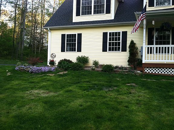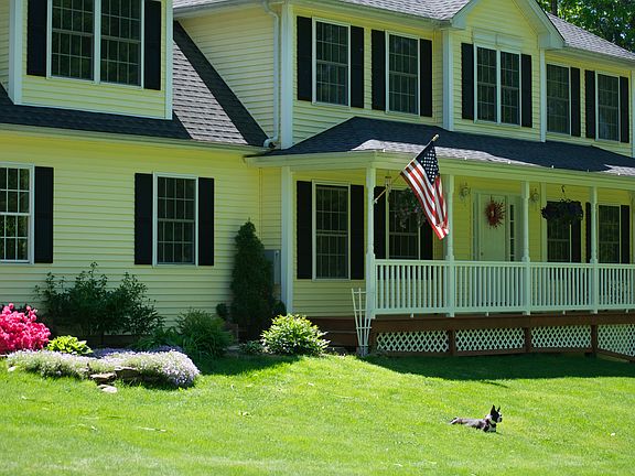 Welcome to this custom designed Colonial on 2 acres Quiet tranquil setting, yet only minutes to main Routes. As you approach this home, you will be greeted by the welcoming front porch - grab a rocking chair and soak in the beauty of nature As you enter you will see the openness of this floor plan with the formal dining room to the left and the graciously sized living/family room to the right and kitchen straight ahead. Where to go first? Your are sure to enjoy this expansiveness of the living/family room complete with a fireplace and built in area for your flat screen TV, not to mention the new gleaming hardwood floors that were recently added. If you have multiple chefs in your home - you are sure to enjoy this large kitchen with a center island that should have its own zip code The custom cabinets with tiered tops, glass door for displays, stainless appliances, Corian counters and, oh wait - drawers at the very bottom of the cabinets just over the hardwood floors Your dining room will be focal point for many conversations as you break bread. Enter the garage into the mudroom area with tiled floors and a half bath. Upstairs you will find a master bedroom fit for a king - truly amazing with its own private deck and a decadent master bath Three additional bedrooms and a full bath complete the upstairs. Outside one cannot help but take in the beauty of the level yard surrounded by trees, giving you a nestled feeling. Raised beds are ready for your gardens