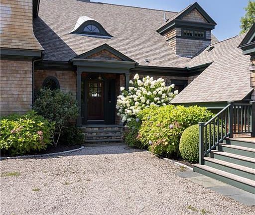 Just minutes from historic Watch Hill, this coastal retreat captures the rare harmony of mountain lodge warmth and seaside sophistication. Anchored by a soaring two-story stone fireplace, the great room with 30 foot ceilings flows seamlessly into a chef’s kitchen and dining space, all wrapped in walls of glass that flood the interiors with natural light. Rich wood accents lend a timeless warmth, while subtle coastal details infuse a breezy elegance—your own “coastal cabin” where forest and ocean meet. Perched high on over two acres of pristine grounds, the home spans over 6,000 square feet with panoramic vistas that sweep across the Atlantic, from Block Island to Montauk. Every bedroom offers an ensuite, while the primary suite is a spa-like haven of indulgence. A sunroom off the main living space beckons for painting, reading, or simply soaking in the views, while a game room off the kitchen ensures effortless entertaining. The finished lower level extends the living space with room for fitness, media, or guests, while the three-car garage offers both convenience and storage for coastal adventures. Outside, manicured landscaping frames expansive decks and gathering spaces, designed to celebrate every sunrise and sunset. A rare fusion of scale, setting, and style, this home is at once intimate and grand—an inspired canvas for coastal living at its most refined. Come make this extraordinary home your own!