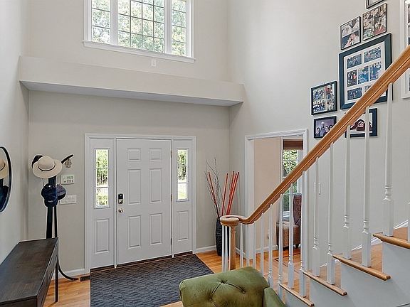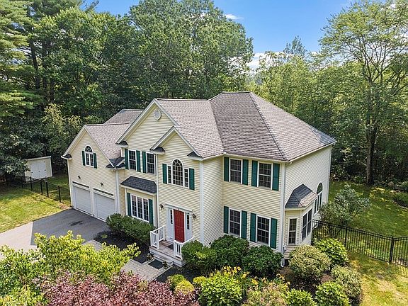Enter this stunning Colonial to an elegant two-story foyer. In the front is a bright home office. The beautiful living room has 18' ceilings, a gas fireplace and tons of windows. The large eat-in kitchen was renovated by these owners with an island that has seating space, granite countertops and new appliances. There are four spacious bedrooms upstairs, including a primary bedroom suite that is a sanctuary and has extra space to relax! It has a lovely bath with a soaking tub, a double vanity and a separate shower. Even the kids' bath is stunning. The basement is wonderfully finished with plenty of space for a playroom, exercise space, or even a teen hideaway. All of this, as well as a private fenced back yard, deck and patio space is perfect for entertaining. The area is surrounded by tons of conservation land and walking trails.