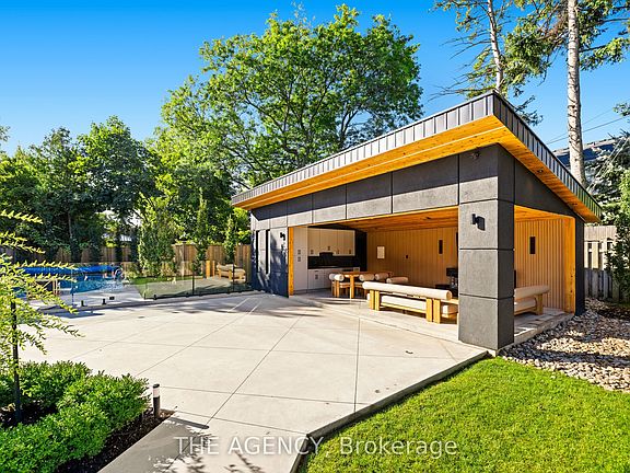 The Toronto Dream! Step into a realm of elegance with this exquisite masterpiece, sprawling across approximately 6,300 sq ft of luxurious total living space. Designed with modern sophistication in mind, this residence boasts soaring ceilings throughout, creating an airy, open atmosphere that invites exploration at every turn. Every inch of the property has been professionally landscaped, with a brand-new heated driveway leading to the pristine home. Outside, you'll be captivated by the magnificent new saltwater pool and cabana, complete with lush new turf that transforms the backyard into your own private oasis. A striking black architectural overhang extends your outdoor living space with style and function. Inside, the gourmet chef-inspired kitchen is outfitted with top-of-the-line built-in appliances and a convenient servery, perfect for both everyday cooking and entertaining guests. Retreat to one of the four spacious upstairs bedrooms, each featuring its own walk-in closet and private ensuite bath, offering ultimate privacy and comfort. The dedicated nanny suite on the lower level provides flexibility and convenience for larger families. Indulge in the serenity of the sauna room, your personal sanctuary for unwinding after a long day. With every detail thoughtfully curated, this home offers a rare blend of luxury, comfort, and modern elegance.