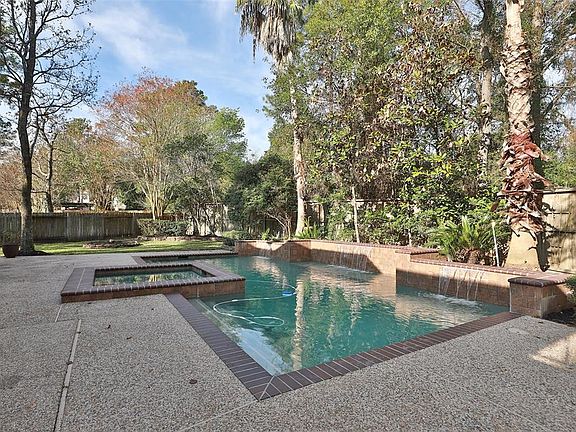 Beautiful Village Builders home on a large cul-de-sac lot (over a 1/4 acre) that has all the upgrades and more: hardwood floors, freshly painted interior and new carpet, crown molding, Island kitchen with Avanza countertops, stainless steel appliances (built-in refrigerator; double ovens--convection); gas stovetop; gorgeous freshwater pool, spa, and waterfalls; Built-ins in study (french doors), ample laundry room with sink; gas logs with remote; full sprinkler; huge walk-in TX basement, 3 car/3 porte-cochere.