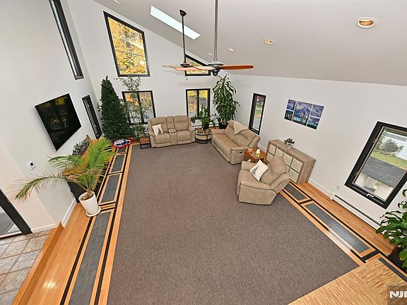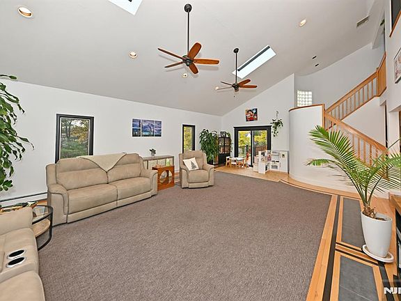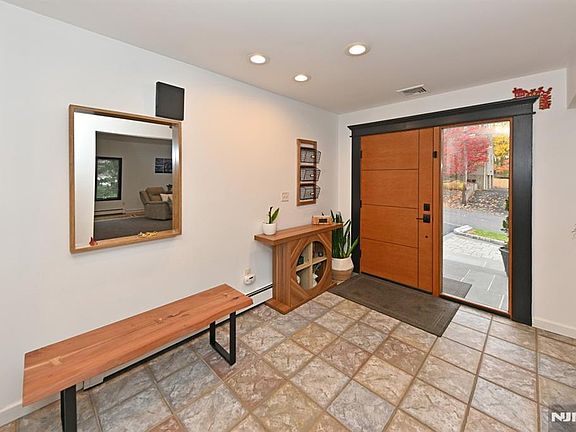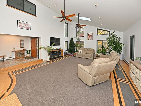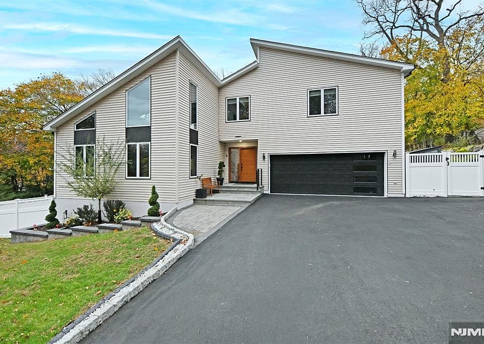 Incredible Contemporary Style home in Woodcliff Lake situated on a quiet street yet close to train, bus, shops and restaurants. Gorgeous, professionally landscaped grounds with specimen plantings, sprinkler system, detailed lighting, boulder rock walls and fully fenced rear yard. Deck offers large pergola with fans, lighting and gas grill. Updated roof, gutters, expanded and sealed driveway, new sheds, updated furnace and hot water heater. Main floor boasts an immense great room with clerestory windows and vaulted ceiling, large dining room opens to the spacious kitchen with center island. Laundry room is right off the kitchen, along with the powder room and access to the 2 car, heated garage. 2nd floor boasts a large open landing, primary bedroom offers a beautiful private terrace, walk-in closet, double door closet, beautiful primary bath with shower stall, double sinks and jetted tub. 3 additional spacious bedrooms and full bath. Lower level in beautifully finished with large rec room, serving station, powder room, storage room and walk out to side yard. The setting, location and detail to this home is amazing!!