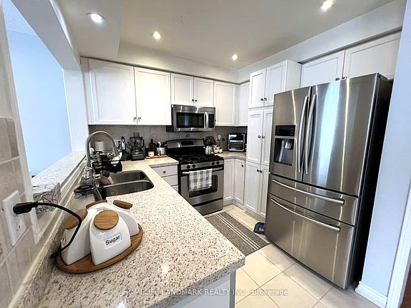Bright & Spacious Family Home! Only share the Garage wall with neighbor, Like a Detached. 3 Beds, 3 Baths, Open Concept, Vaulted Ceiling Living Room, Bright Dining Room And Family Room, Hardwood Floor Throughout, Quartz Kitchen + Bathroom Counter Tops! Ready To Move In, House Comes With Custom California Shutter Window Blinds! Minutes Walk To Schools, Bus Stops, Shops, Short Distance To Hwy 400, New Hospital + Ttc Subway. Pot Lights Throughout, Designer Chandeliers And Lightings, No Side Walk.
