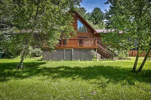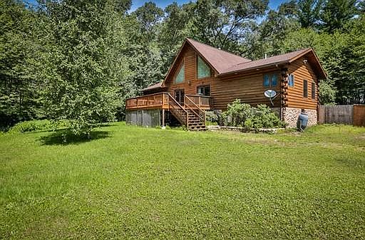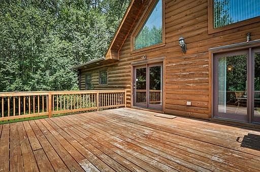 Enjoy privately sited, unique log home just minutes from the ocean and commuter routes. See deer, fox and birds from spacious deck and porches. The interior features a cathedral ceilinged living room with a whole wall of glass providing a light spacious atmosphere as well a great passive solar heat in the winter. The open floor plan offers a contemporary feel to the traditional wood interior. The master suite opens to a small Romeo and Juliet deck and has a luxurious bath complete with granite topped vanity, glass enclosed circular shower and whirlpool tub. The second bath includes the laundry but also features a glass enclosed shower. The second floor loft provides a great hide away but can be enclosed to provide a large bedroom. The lower level features a pellet stove which is a good source of supplemental heat. This home is a perfect combination of rustic charm and modern amenities.