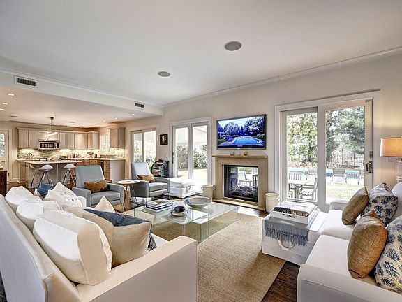 Spectacular renovation. Professionally designed to an exacting level and open to allow natural light to flow into every room. The open kitchen, dining, and living rooms have been totally updated, allowing for easy living and entertaining. Sound system throughout, 2 gas fireplaces, one double sided with glass for indoor and outdoor patio enjoyment. Spacious living spaces and chef's kitchen, all open and inviting. There are 4 bedrooms and 4.5 baths, all new, marble and tasteful. The first floor master bedroom is bright, spacious and offers a master bath with soaking tub and separate shower stall. Additional 2 good sized guest bedrooms are on the second level, both also ensuite, plus a roomy den. On the first level there is also an office or 4th bedroom. Outside is a beautifully landscaped yard with a brand new heated pool and stone surround, custom designed by the owners. Two car garage, lovely property in a location convenient to all.
