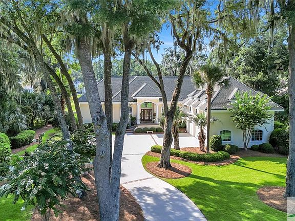 This stunning property is located in the Deer Creek area of The Landings and offers breathtaking golf, lagoon, and marsh views. The heart of the home features a soaring 20-foot ceiling in the gourmet kitchen and adjoining great room with fireplace and panoramic views. The formal dining room with a butler’s pantry is a hosts dream entertaining area. Enjoy the outdoors from the spectacular porch with retractable screen overlooking Deer Creek #8. The spacious owner's suite includes ample closets, an adjoining bath with dual vanities, a walk-in shower, and a soaking tub. Relax in the gorgeous office/study with floor-to-ceiling bookcases. There are two additional en-suite bedrooms which provide privacy for family and guests. The flexible bonus room can be used as an office or bedroom. Additional highlights include a large laundry room, a three-car garage and abundant attic storage. The beautifully maintained property has loads of curb appeal.