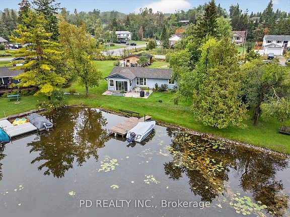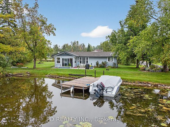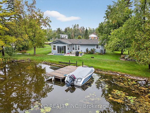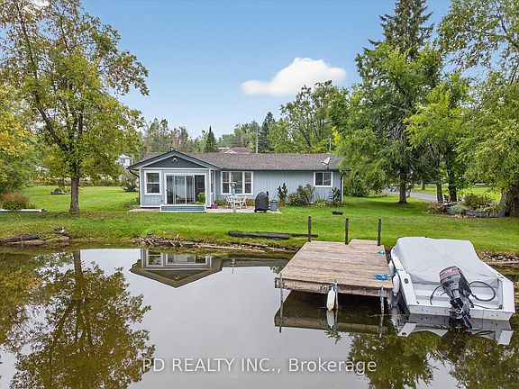 Waterfront Living on Pigeon River. This charming 2 bedroom, 1bath waterfront home or 4-season cottage sits on a level 0.42 acre lot with direct access to the Pigeon River and the Trent-Severn Waterway. Perfect for boating, fishing, and water sports. Eat-in kitchen with water views opens to a spacious living room with woodstove. Bonus sunroom with 8-ft patio door walks out to the waterfront. One bedroom includes a walk-in closet. Private dock and waterside patio offer excellent outdoor living and entertaining space. Just a short boat ride to a popular swimming sandbar. Only 2 minutes to public boat launch; close to Bridgenorth, Peterborough, and Lindsay. Bring your vision to life in this waterfront home full of potential. A rare opportunity to renovate or update to suit your style in a peaceful, sought-after location. 200 amp service and natural gas available at the street.