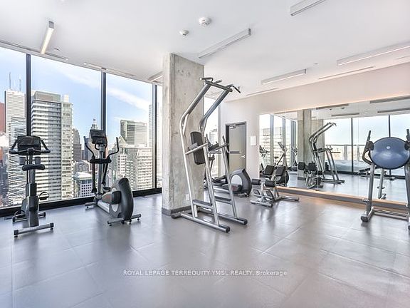 "King Charlotte" - A sleek, modern high-rise in the heart of vibrant King West & Spadina! This stylish one-bedroom suite offers 9' exposed concrete ceilings, a signature concrete accent wall, and floor-to-ceiling windows that fill the space with natural light. Features include engineered hardwood flooring, Scavolini kitchen cabinetry, quartz countertops, and stainless steel appliances with a gas cooktop. The spa-inspired bathroom boasts a deep soaking tub and rain shower. Enjoy world-class amenities: a rooftop terrace with infinity pool, fully equipped gym, party room, and 24-hour concierge. One bike locker included. Perfect for a downtown professional or savvy investor seeking modern comfort and a dynamic urban lifestyle!