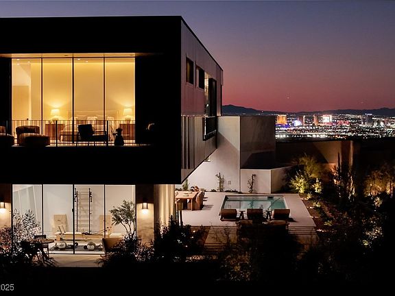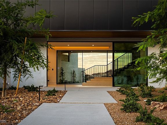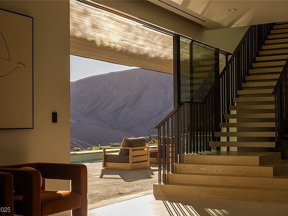An architectural achievement by studio g ARCHITECTURE, this new Desert Design Study home stands on a nearly 1-acre corner homesite within Ascaya—one of the most exclusive residential communities in the Las Vegas Valley. With design that emerges from the canyon and cantilevers toward the horizon, the home commands 270° views of the Strip, mountains, and desert. Bold forms and a signature fire feature define its arrival, while 11’ Styline window walls and indoor-outdoor connections create a seamless flow. The gourmet kitchen features Miele appliances, PITT cooktop, and full prep kitchen; five bedrooms include a spa-level primary suite; the lower level offers an entertainment lounge and casita. Outdoor living spans terraces, dual kitchens, and poolside gathering. Finishes include European oak floors, Taj Mahal quartzite, designer fixtures, elevator, Crestron automation, and an 8+ car garage. Enjoy access to Ascaya’s Clubhouse, dining, fitness center, family park, and trails.