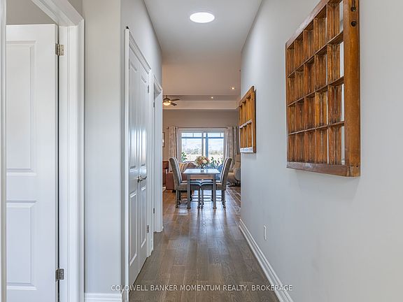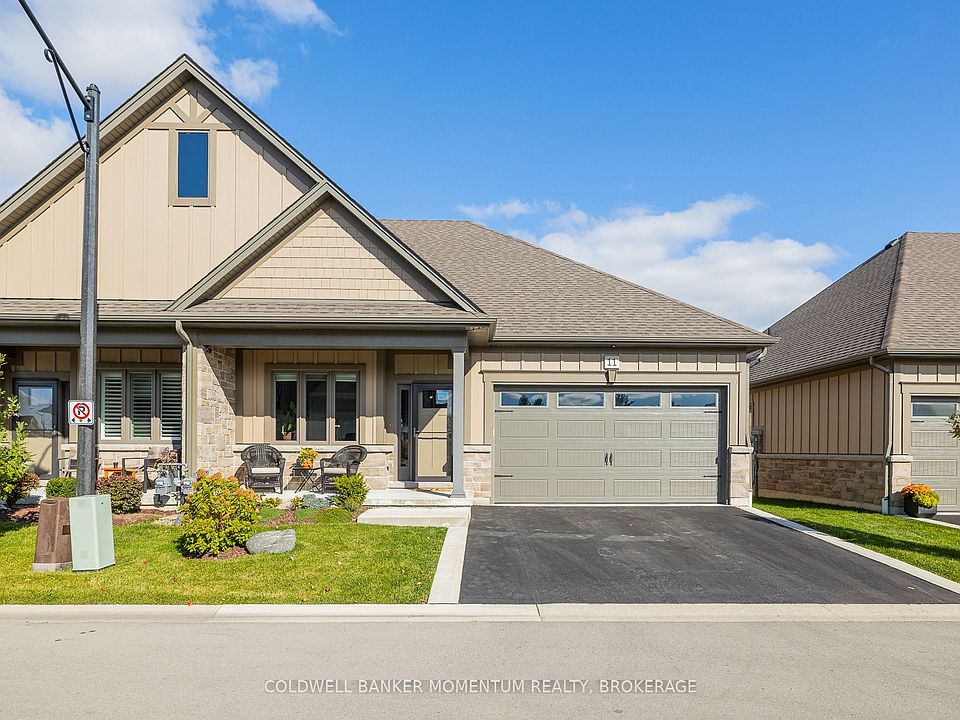 Stunning 4 yr old end-unit bungalow townhouse nestled in the exclusive Spring Creek Manor development of Smithville where it perfectly blends modern luxury with small-town charm. Featuring 2+1 bedrooms and 3 full bathrooms, this beautifully upgraded home offers elegant finishes, thoughtful design, and peaceful surroundings - all just minutes from local amenities, shopping, coffee shops and more. Step inside to discover a bright open-concept main floor where the kitchen, living and dining areas flow seamlessly together - ideal for everyday living or entertaining guests. The gourmet kitchen boasts quartz countertops, stylish tile backsplash, a working island and four stainless steel appliances. Engineered hardwood flooring throughout the main floor adds warmth and sophistication. The versatile second bedroom is perfect as a guest suite or home office, while the 4 pc main bathroom and convenient main-floor laundry with direct access to the double car garage enhance comfort and functionality. The spacious primary bedroom is a true sanctuary featuring a spa-inspired 4 pc ensuite and walk-in closet. Expanding the living space is the beautifully finished basement with large recreation room, a third bedroom, 3 pc bathroom and generous storage areas. The pièce de résistance is the screened-in back porch that overlooks farmland for as far as the eye can see, making it the perfect space for privacy, relaxation and tranquility. Enjoy barbecuing on your private deck with gas BBQ hookup. Condo fee includes: water, parking, snow removal, lawn care and common area maintenance. Don't miss this rare opportunity to own a luxurious, move-in-ready bungalow townhome in an exclusive enclave of 11 vacant land condominium's just minutes from everything Smithville has to offer!