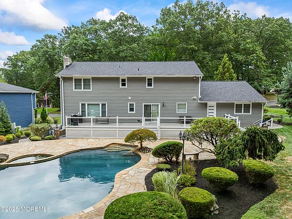 Beautifully Renovated 5 Bedroom Colonial With Full Finished Basement And Resort Like Backyard With Inground Pool In One Of Morganville's Most Sought After Developments, Triangle Oaks! Welcome to 11 Churchill Drive, a warm and inviting home where pride of ownership shines through every detail. From the moment you arrive, updates big and small create a true move-in ready experience. New front and back doors, fresh paint throughout, and new carpet upstairs complement the updated flooring across most of the home. With five bedrooms, including a convenient first-floor bedroom perfect for guests or multigenerational living, this home offers flexibility for any lifestyle. The full finished basement provides even more usable space for recreation, storage, a home office, or gym. The beautifully updated kitchen features a high-end refrigerator only a year old, a brand-new oven range top, and new dishwasher. Everyday living is made even easier with a new washer and dryer.