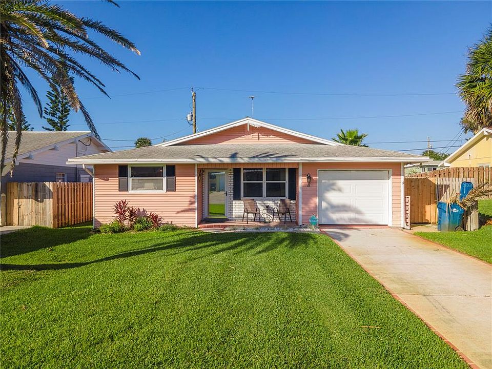 Welcome to your coastal oasis! This spacious 2-bedroom, 2-full bathroom beach bungalow, located just one block from the sun-kissed shores of Ormond Beach, offers a perfect blend of comfort and seaside charm. This was a primary home for many years. It has been incredibly maintained. Nestled between the tranquil waters of the Halifax River and the majestic Atlantic Ocean, this concrete block home boasts a welcoming great room and a cozy den, providing ample space for relaxation and entertaining. The kitchen, complete with a convenient breakfast bar, pantry, and generous cabinet space, overlooks the den, creating an open and inviting atmosphere. Step through the sliding doors onto the large lanai, a perfect spot for enjoying the ocean breeze and entertaining guests, with easy access to the meticulously manicured backyard. The property also features a 1-car attached garage, adding a touch of convenience to your coastal lifestyle. Whether you're a beach lover or a nature enthusiast, this beach bungalow offers a delightful retreat for those seeking a harmonious blend of seaside living and comfort. Convenient to restaurants and shopping. Just 6 miles north of Daytona. Bedroom Closet Type: Built In Closet (Bedroom 2).