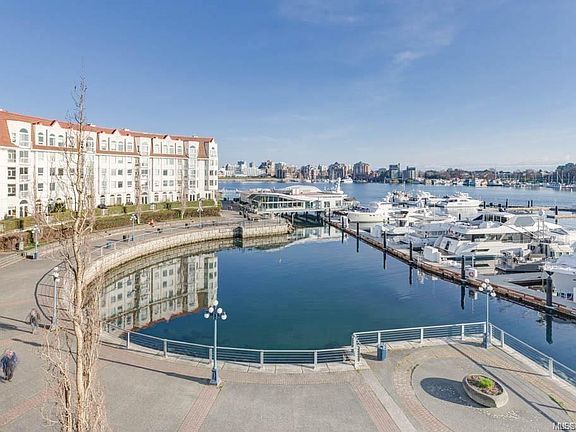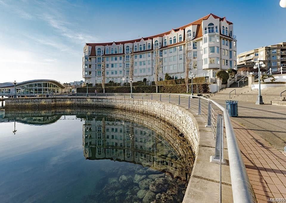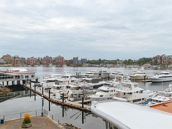Breathe in the Ocean air & view spectacular panoramic waterfront ocean views in this 2 bed 2 bath corner unit at the Royal Quays in Victoria, BC. Steps from the inner-harbour and downtown, you'll enjoy life on the water and all the amenities the Songhees area has to offer. Featuring a newly renovated chef's kitchen, generous sized dining and living areas with water views, two good sized bedrooms with water views, all in a very functional layout. Panoramic views of the ocean, mountains, and city skyline from the large windows truly highlight this location. Retreat to the spacious primary suite with ocean views, its own balcony, and a spacious ensuite bathroom. The 2nd bedroom is separate from the primary and provides versatility for guests or a home office. Step outside onto one of your 2 private balconies and savor the sights and sounds of the waterfront. Secured underground parking and separate storage included. Conveniently located near walking trails, dining, and entertainment.