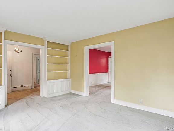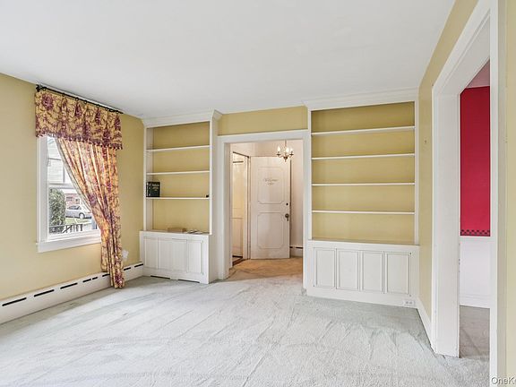 Inside, you’ll find a spacious living room with a built-ins and a fireplace and beautiful hardwood floors waiting to be revealed beneath the carpet. The traditional layout includes two generously sized bedrooms on the first floor, adjoined by a large full bathroom. One of the bedrooms is currently used as a TV Room. Upstairs you will find two additional bedrooms and a full bath, providing flexible living options. The bright eat in kitchen offers the perfect opportunity for updating to your taste, while the formal dining room is ideal for entertaining.