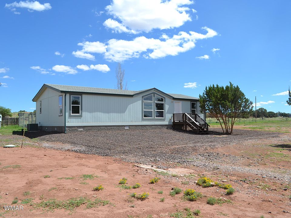 Recently remodeled, with fresh paint, new carpets and vinyl flooring, new stove, dishwasher and microwave & light fixtures. Move in ready. Nice deck off rear with fenced yard, multiple outbuildings for a great little homestead. Private well, septic. Great views to the West. On grid power, A/C, newer on demand hot water heater. Guest bath has Safe Step walk-in tub/shower. Great property for a small ranch. Approx. 30 minutes to Snowflake. Approx. 5 miles of non-maintained road. Located at an elevation of approx. 5600 ft, enjoy the four seasons with mild winters (abundant sunshine), summers with monsoonal rains - everything greens up. Don't miss this move in ready home.