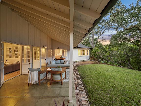 Elegance and natural beauty abound in this updated Traditional 4BD/4.5BA plus Studio/1BA apt., offering estate living on over an acre in Orinda’s Sleepy Hollow. Set on a quiet cul-de-sac, this classic 3820 SQFT home features an ensuite bath in every bedroom and several French doors opening onto an expansive covered veranda bringing the beautiful outdoors inside. One wing of the home features a sunny living room with fireplace and built-in shelves, a dining room with picture bay window and built-in cabinets, and a fully renovated chef’s kitchen with a large adjacent den – all rooms with doors opening wide for wonderful indoor/outdoor living. Down a hallway, find a powder room, big laundry room with sink, storage, and interior access to the two-car garage. The sleeping wing boasts four roomy bedroom suites, including the primary with French doors outside and stairs to a lower level with a sauna and flexible space ready as an office. Above the garage, the studio apartment has a large galley kitchen and separate entrance. The grounds are exceptional with level grassy lawns and gardens, surrounded by a beautiful California oak woodland. Down the road, enjoy top-rated public schools, Sleepy Hollow Swim & Tennis Club, Orinda Country Club, Briones Hills trails, Orinda Village, and BART.