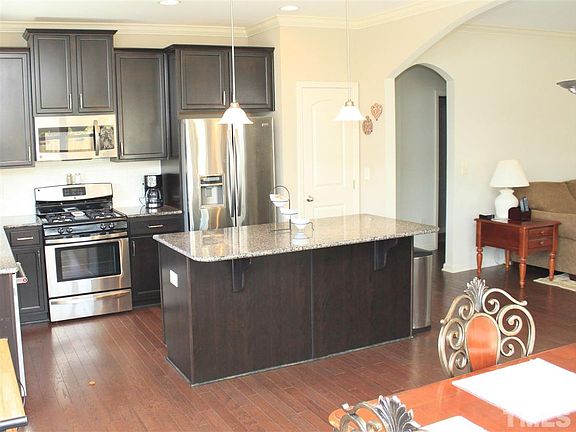 Kitchen has been decked out with beautiful espresso colored cabinets & varying heights for character. Stainless steel appliances, granite countertops, a large island, window over sink, & pendant lights, recessed lights too. The huge eat-in area is surrounded by the bay style windows. Check off "AWESOME" for kitchen. Open LR has lovely archway. MBR on main floor which has ceramic shower & separate tub. Upper level has large BR's + Loft. Fenced Yard in quiet cul-de-sac and walking distance to community pool