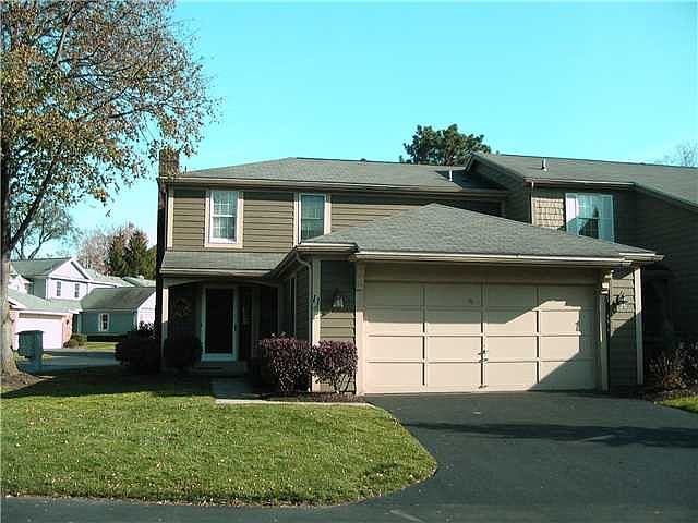 Sparkling end unit in desirable Woodcreek, updated kitchen with newer hardwoods, countertops, and stainless appliances, new 1st floor powder room, living room fireplace, huge master bedroom suite with sitting area & walk in closet, freshly painted throughout, new deck, finished basement with Corning fiberglass system sound proof, newer furnace & central air, 2 car garage, walk to the canal or Pittsford Village, call lister for easy showings.
