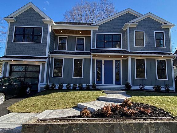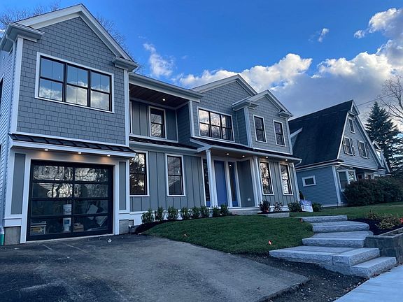Luxury new construction in Lower Falls allows for open living on 4 levels. Lg foyer entry w/raised panels leads to living & dining area w/coffered ceilings. Open kitchen & family area w/island & floor to ceiling cabinets w/waterfall quartz island. Lg attached FR w/gas fireplace & wet bar w/large windows that lead to level peaceful yard & patio. Oversized garage leads to mudroom w/custom cubbies.2nd floor has 4 bedrooms - lg bedroom w/en suite bathroom is perfect for an in-law suite. 2 large bedrooms share full bath w/private shower and toilet area. Primary suite hashis/her walk-in closets w/custom shelving, bathroom w/freestanding tub, his/her sink areas & glass shower w/rainfall head & private balcony. Loft suited for a playroom for adults or children. Basement is the perfect Au Pair Suite w/high ceiling, bedroom w/walk in closet, large play room/man cave & full bath w/shower. Custom millwork throughout. Prime location w/access to I90/95, public transit/Riverside Station.
