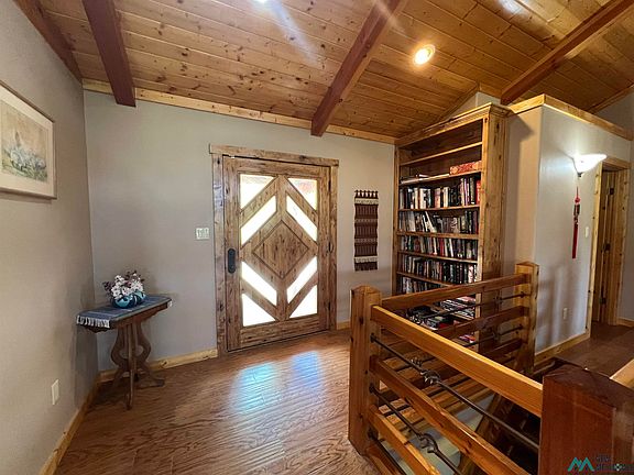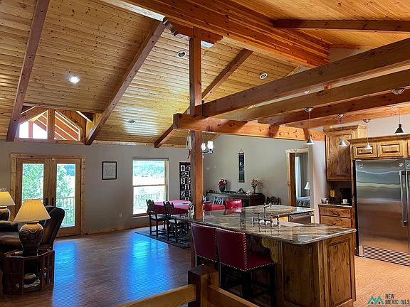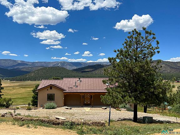 3 BR/3.5 BA, 2714 SF gorgeous custom designed home in Pendaries Village on 0.94 ac. features a beautiful hand made front entry door leading to an open living, dining and kitchen area enhanced with beautiful vaulted ceilings. The split floor plan features a primary bedroom with ensuite bath including a soaking tub, separate shower and double sinks, and separate access to the deck. Also a guest bedroom with ensuite bath and separate access to the deck. Right off the chef's dream kitchen is a large pantry and laundry area. A convenient half bath is located on the main level. Lower level offers a bonus room, bedroom, and bath with private entrance to the covered patio area, and there's a store room with outside entrance. The two car attached garage offers easy access. The spacious deck, partly covered, draws you out to watch sunrises, sunsets, wildlife and the amazing season changes with breathtaking views of the Rociada valley and Sangre de Cristo mountains.