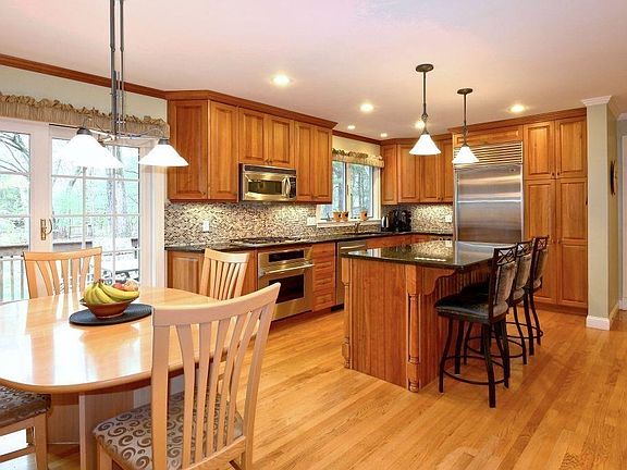 Warmth and comfort abound in this 1997 cape on a quiet street in North Sudbury. The first floor boasts: a stunning kitchen with cherry cabinetry, granite counters, island with breakfast bar, Sub-Zero refrigerator and stainless appliances; kitchen open to dining area and family room with fireplace; living room; versatile den/bedroom with adjacent full bath; and mudroom of your dreams. The second floor features: master bedroom with two closets and full bath; two additional bedrooms each with direct access to shared bath. The lower level includes: a second family room with gas stove; wet bar; exercise room; and utility room with laundry area and storage. The two-car garage is attached with walk-up storage above. Enjoy the large level lot and spacious deck.
