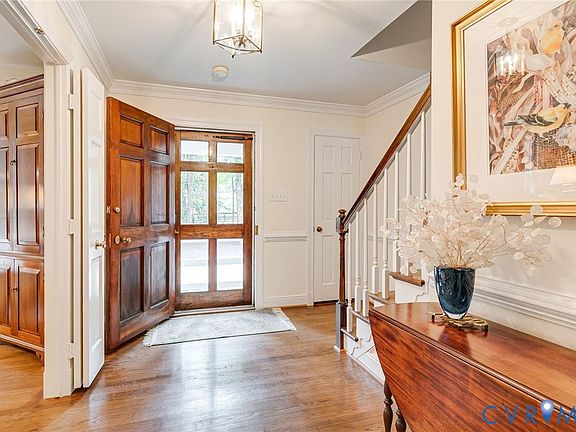 Set back from the road on a private acre plus lot surrounded by mature trees, this charming 5 bedroom, 3.1 bath Colonial is a true gem in Lower Tuckahoe. A welcoming covered front porch and gracious foyer open to a spacious formal living room with fireplace and a separate formal dining room, ideal for entertaining. The eat-in kitchen features stainless steel appliances, granite countertops, a walk-in pantry, and opens to a lovely screened porch with ceiling fan—perfect for enjoying views of the serene backyard. The cozy family room offers character and warmth with exposed ceiling beams, a bay window, and a second fireplace. Upstairs, you'll find five generous bedrooms with hardwood floors and ample closet space, along with three full baths. Hardwood flooring and detailed moldings flow throughout the home. Additional highlights include a freshly painted exterior, brick patio, detached shed, and an attached garage. Don’t miss this exceptional opportunity to own a classic home in one of the area’s most desirable neighborhoods along the coveted River Road corridor.