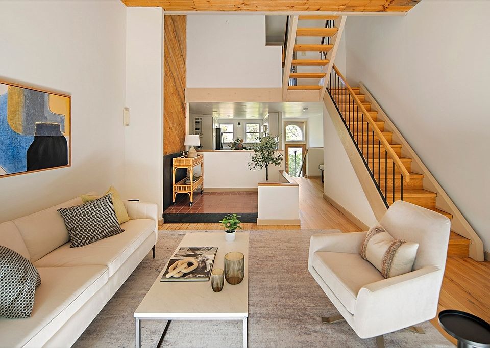 Central airUpdated kitchenExposed wood beamsRefinished oak floorsGarage plus additional parkingAbundant natural lightSoaring vaulted ceilings