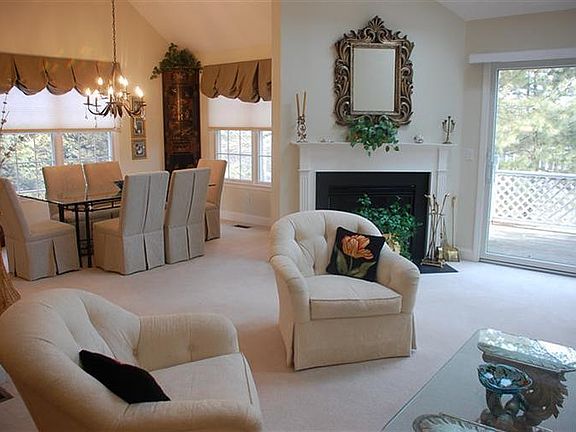 Fabulous ranch style condominium with open and airy rooms located on a quiet dead end lane. The master suite with walk in closet and spacious private bath offers double sinks and walk in shower. The quest bedroom is a very roomy 14x 14. The 24 x18 LR has catherdral ceilings, a gas FP,sliders to a priv. deck. Enjoy the gracious dining rm which can comfortable fit any size gathering. Your kit offers a cozy dining nook with a sunny bay window. Newly painted interior, immaculate condition. Garage, attached, heat assoc pool and clubhouse, great location near shops and water access.