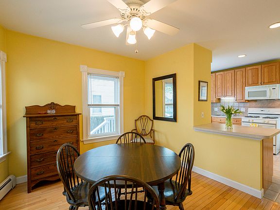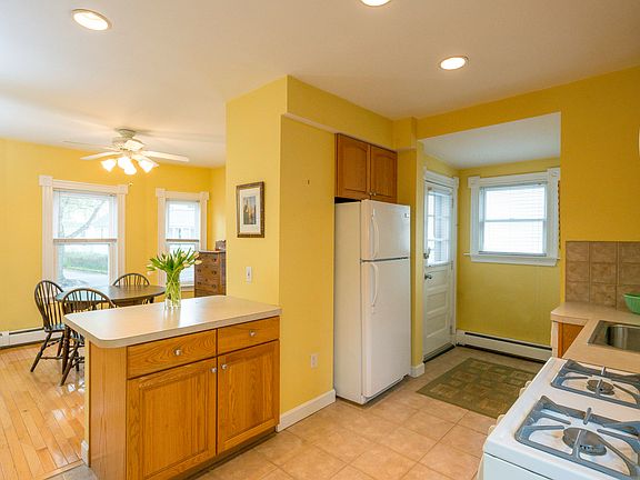 Open Houses Sat 5/14 11:30 - 1:00 & Sun 5/15 11:30 - 1:00 A perfect home with everything to offer! This charming house is well cared for, thoughtfully upgraded and located on a quiet tree-lined street. With a contemporary layout, the first floor features a open kitchen and sunny bow-front dining room which flow directly into the living area. The renovated kitchen, with oak cabinets and gas cooking, is fully applianced and flawless. A bright living room features a high ceiling with fan, two large windows and a french door leading to a front mud room. Huge master bedroom has ample closet space and plenty of room for a king sized bed and furnishings. Second full size bedroom with large closet. Great storage throughout and a wide open basement ready for some finishing. Upgraded heating, double insulated attic and more. The fenced-in rear patio and adorable garden are just waiting for Summer! Close to shopping, bike trails,highway and more.