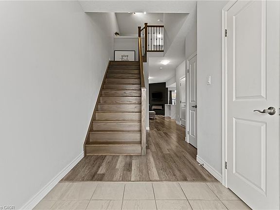 Welcome to this beautiful 2-storey townhome in the heart of Smithville! The main floor offers modern vinyl flooring throughout, a convenient powder room, and a stunning custom built-in TV feature wall with an electric fireplace. The contemporary kitchen features quartz countertops with a waterfall edge, stainless steel appliances, and a range microwave. Upgraded oak stairs with sleek steel spindles lead to the second level, where you’ll find plush carpeted bedrooms. The spacious primary suite includes a 3-piece ensuite and walk-in closet. Two additional guest bedrooms—each with double closets—are serviced by their own 4-piece bathroom. An unfinished basement provides future potential, while the rear deck offers the perfect space for outdoor entertaining. A must-see home!