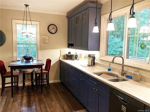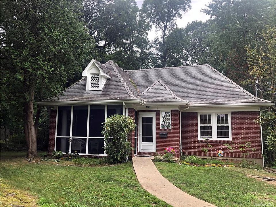 A Charming brick Cottage located within a park. This one level 3 Bedroom, 1 bath home has generously sized rooms. Updated kitchen with quartz countertops, Recessed lighting an beautiful cabinetry. Living room with brick fireplace opens to 3 season screened porch. Large Formal Dining room with builtin cabinets. 3 first floor bedrooms. Full Hall bath, Oak Hardwood floors thru out, Crown molding. Fireplace has wood burning stove insert. Freshly painted and well maintained. New hot water heater, Young Roof and Gas Furnace. Lots of storage, Cedar closet. Walk up Full house attic, Full unfinished basement with laundry. Tandem 2 car garage. Fenced in yard, close to town and train station.Taxes do not reflect basis star savings of $2840. Seasonal Views of Hudson and Palisades, Glorious sunsets all year round.
