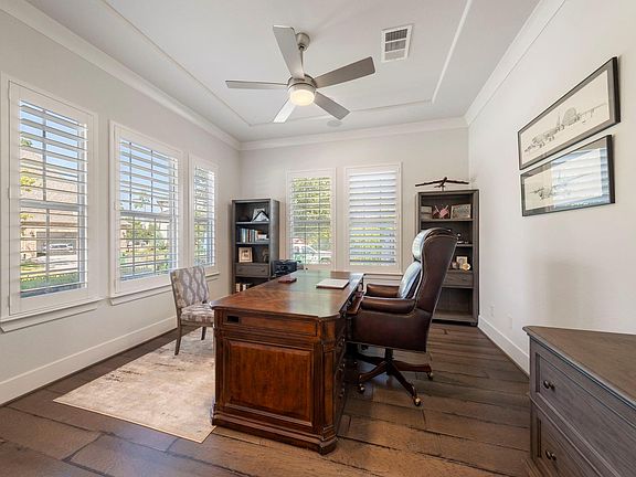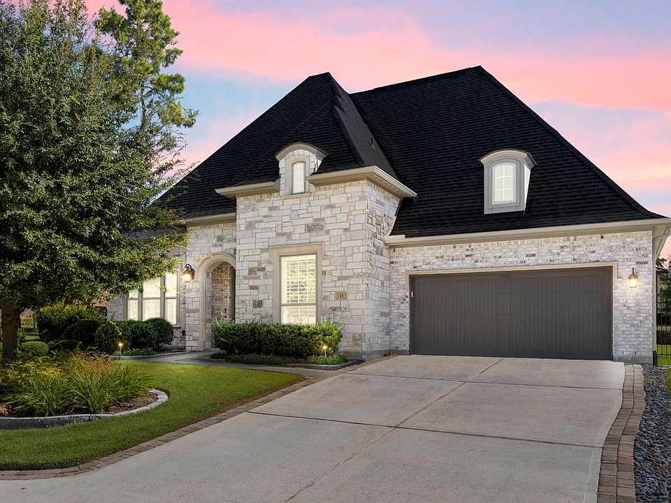 Impeccably maintained & like-new 1-story Darling home on large corner lot in Creekside! This elegant 3/3.5/3 residence offers a study, media room & 3-car garage w/epoxy floors + huge walk-up attic. Soaring ceilings, engineered wood floors & plantation shutters set a refined tone. Open-concept living, kitchen & dining spaces create effortless flow—perfect for entertaining. Gourmet kitchen boasts SS appliances, gas cooktop, built-in fridge, double ovens, sleek countertops & large island. Spacious primary retreat feat bay windows, tray ceiling & spa-like bath w/soaking tub, walk-in shower, dual sinks, vanity & direct access to utility room. 2 guest suites each offer en-suite baths. Media room w/surround sound & wet bar. Backyard oasis feat extended covered patio plumbed for gas, wrought iron fencing & manicured lawns/tree-line for privacy. Whole-home generator & water softener! Walking distance to Smooth Stream park & quick drive to HEB, dining, shopping & all The Woodlands has to offer!