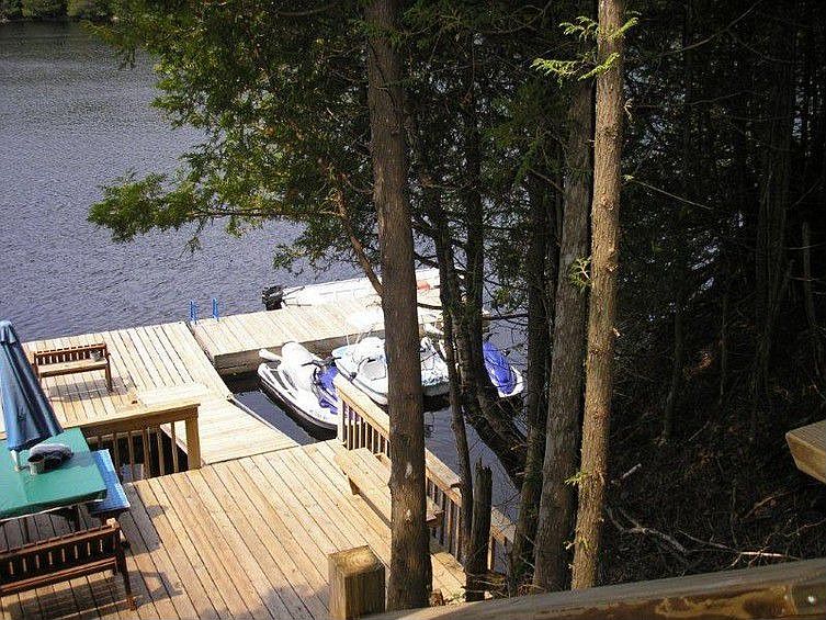 This unique camp on Lake Harris is surrounded by decks with an outside covered bar area, so you can be out in the rain but still be dry! There are multiple levels with stairs to a boat shed, and a landing, then down to a large cantilevered deck over looking the water and mountain views, plus a large dock and two smaller ones for all your water front toys, and deep water access for great swimming. The camp offers two bedrooms plus three sleeping lofts, a nice living room, dining area, a kitchen, one bathroom, and a mud room. There is also a three bay pole barn on the property to store boats, with a separate room above for more storage. All this plus 145 feet of frontage on Lake Harris!