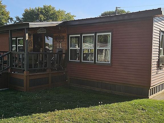 This is a cosy log cabin like home that has been remodel from top to bottom. With new plumbing (all pex with distribution block/all water lines are inside to prevent freezing),electric, windows, siding,installation, metal roof,water heater and softener, elec furnace. All cabinets and doors and walls done by us. Carport has been turned into a heated garage. Pictures don't do it justice. It is total electric except for range, outside faucets can have either hot or cold water. It's is only 1 bedroom, 1 bath, open concept. We have before pictures if interested. Located in Miamisport and Lot rent is $450.00 month. Appliances are included except washer/dryer. Don't really want to sell, but want to move close to family, was remodeled to stay. Must see to fully appreciate it, you'll fall in love with it.