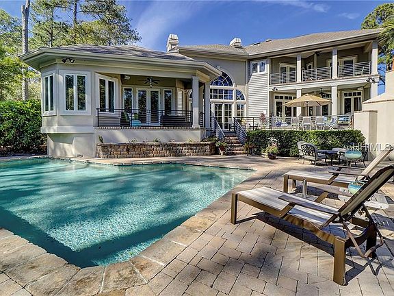 Looking for a gorgeous home in a spectacular setting? This stately home located in Long Cove Club has fantastic wrap around lagoon views and sits at the end of a cul-de-sac. This 5 bedroom, 4.5 bath home is just a short stroll to the Long Cove Marina. This home has wonderful outdoor living with your own private pool, outdoor fireplace & firepit and covered porches. This home features high-end appliances, large kitchen/family room, Carolina room, office or 5th bedroom, 3+ car garage and so much more! Do not miss this one!