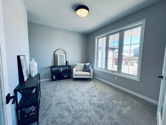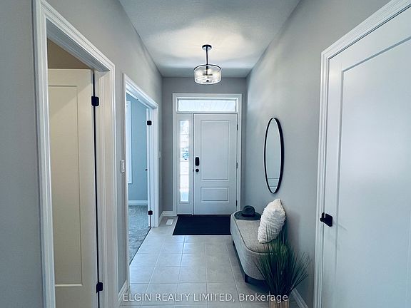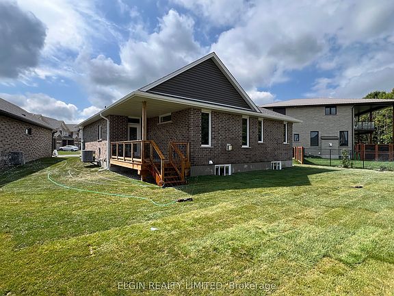 Move-In Ready! The 'Sharpton' bungalow by Hayhoe Homes offers 2 bedrooms, 2 bathrooms, including a primary ensuite with custom tile shower and double sinks. The open-concept design features a designer kitchen with quartz countertops, tile backsplash, and a central island, flowing seamlessly into the dining area and great room with soaring cathedral ceilings and a fireplace. Enjoy a rear covered deck perfect for BBQing, plus a partially finished basement with a large family room and potential for additional bedrooms and a bathroom. Additional features include 9' main floor ceilings, hardwood and ceramic flooring, main floor laundry, a gas line for BBQ, a two-car garage, and Tarion New Home Warranty. Located in Southeast St. Thomas, just minutes to the beaches of Port Stanley and about 25 minutes to London. Taxes to be assessed.