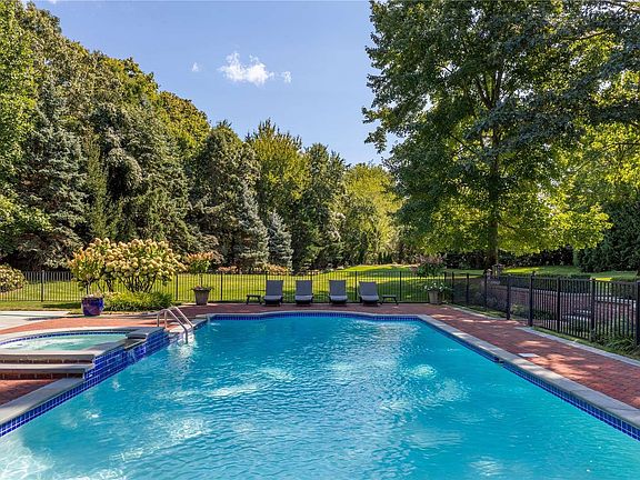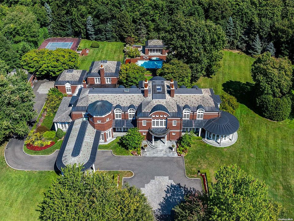 Nestled on a meticulously landscaped 6-acre+ property, 11 Dupont Court epitomizes architectural sophistication and resplendence. This stately Brookville Brick Colonial, constructed in 2005, spans over 15,000 Sq.Ft. and encompasses 7 Bedrooms and 12 Bathrooms. Its graceful design is distinguished by bespoke features such as elaborate woodwork, spiral staircases, marble flooring and soaring two-story ceilings. Natural light is abundant throughout the entire home, flooding through large windows and multiple sets of French doors. The residence's first floor is dedicated to luxurious entertaining spaces, including a formal Living Room and an elegant Dining Room complete with custom cabinetry. The circular Music Room/Conservatory offers beautiful views of the outdoors and the spacious Den is highlighted by a refined limestone fireplace and a two-story gallery mezzanine that overlooks the lower level. The grand eat-in Kitchen is a culinary masterpiece, featuring dual oversized islands, exquisite coffered ceilings, and top-tier Wolf/SubZero appliances. The backsplash is adorned with Delft tile, adding a touch of classic elegance. The Primary Wing on the second floor includes a private office, a generously sized bedroom with a sitting area and fireplace, a large walk-in closet, and a spa-inspired marble bathroom with a soaking tub. The property is enhanced by numerous outdoor terraces, Crestron and Lutron systems, a four-car attached garage, a whole-house generator, a sophisticated surround sound system and more. Approached via automatic front gates, the estate is accessed through a quarter-mile tree-lined driveway. The outdoor amenities are exceptional, including multiple slate patios for entertaining, a sunken tennis court, an outdoor grilling station, a cabana with a kitchenette, and a gunite in-ground pool with a jetted spa. The property is zoned within the esteemed Jericho Union Free School District.