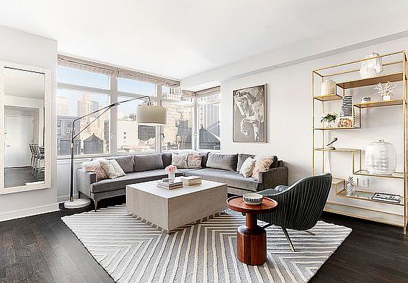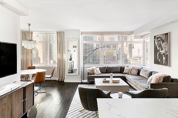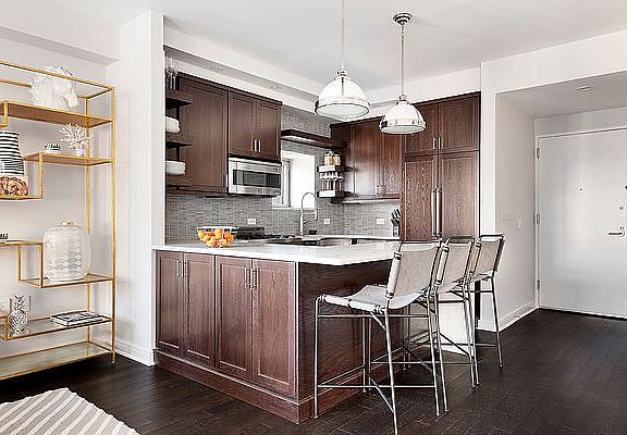18C is now available for rent for an August 21 move-in. The kitchen, bathrooms, and hardwood have all been renovated. This spacious layout features 2 bedrooms & 2 bathrooms. There are spectacular northern views of the Chrysler & Empire State Building. The open kitchen features top-of-the-line appliances, quartz countertops, a breakfast bar, and beautiful mahogany cabinets and shelves. The open living room and dining room are great for entertaining. Both bedrooms are very spacious with plenty of closet space. This unit has Nest Central Air, a washer/dryer, and custom blinds & shades. 18C can come partially furnished if preferred. The Sky House condominium has a full-time doorman, concierge, fitness center, playroom, private storage, cold storage, bike storage, and a live-in super. Located between Fifth and Madison Avenues in the heart of NoMad. Pets are allowed on a case-by-case basis.