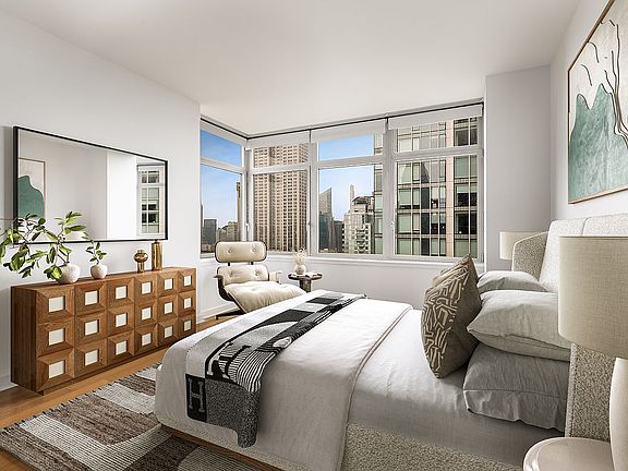 Perched on the 44th floor of the iconic Sky House, this 1-bed, 1.5-bath condo offers 991sqft of light-filled living with sweeping views of the Empire State Building, Chrysler Building, and beyond. The open-concept layout features oversized windows, a sleek chef’s kitchen with premium finishes, a serene bedroom with an en-suite bath, and a convenient powder room.