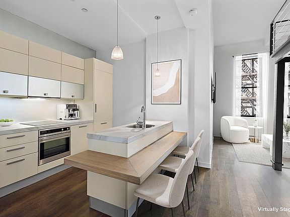 This gorgeous studio apartment in the heart of Midtown Manhattan features wide plank espresso oak floor, EXTRA high ceilings, and oversized windows. The residents of this unit will enjoy solid core doors, central AC and heat climate control. The kitchen is open and has top of the line appliances, including dishwasher, range and stove, Miele exhaust and a Sub Zero fridge, and Washer/Dryer. Bathroom features a Kohler soaking tub.